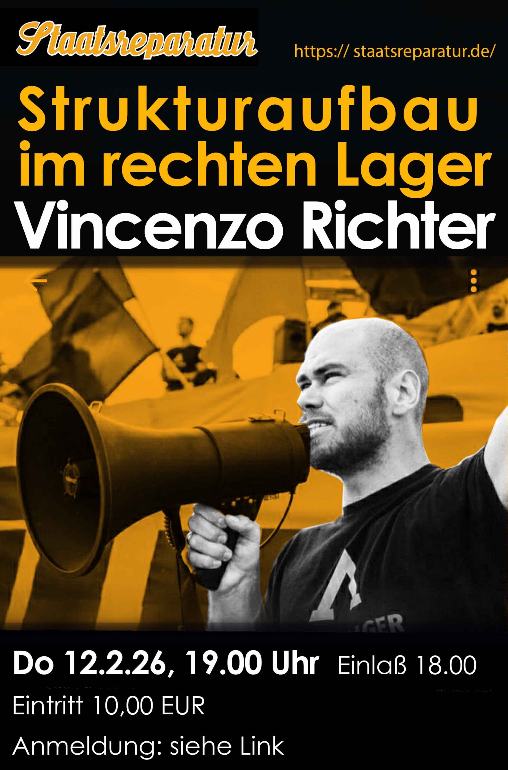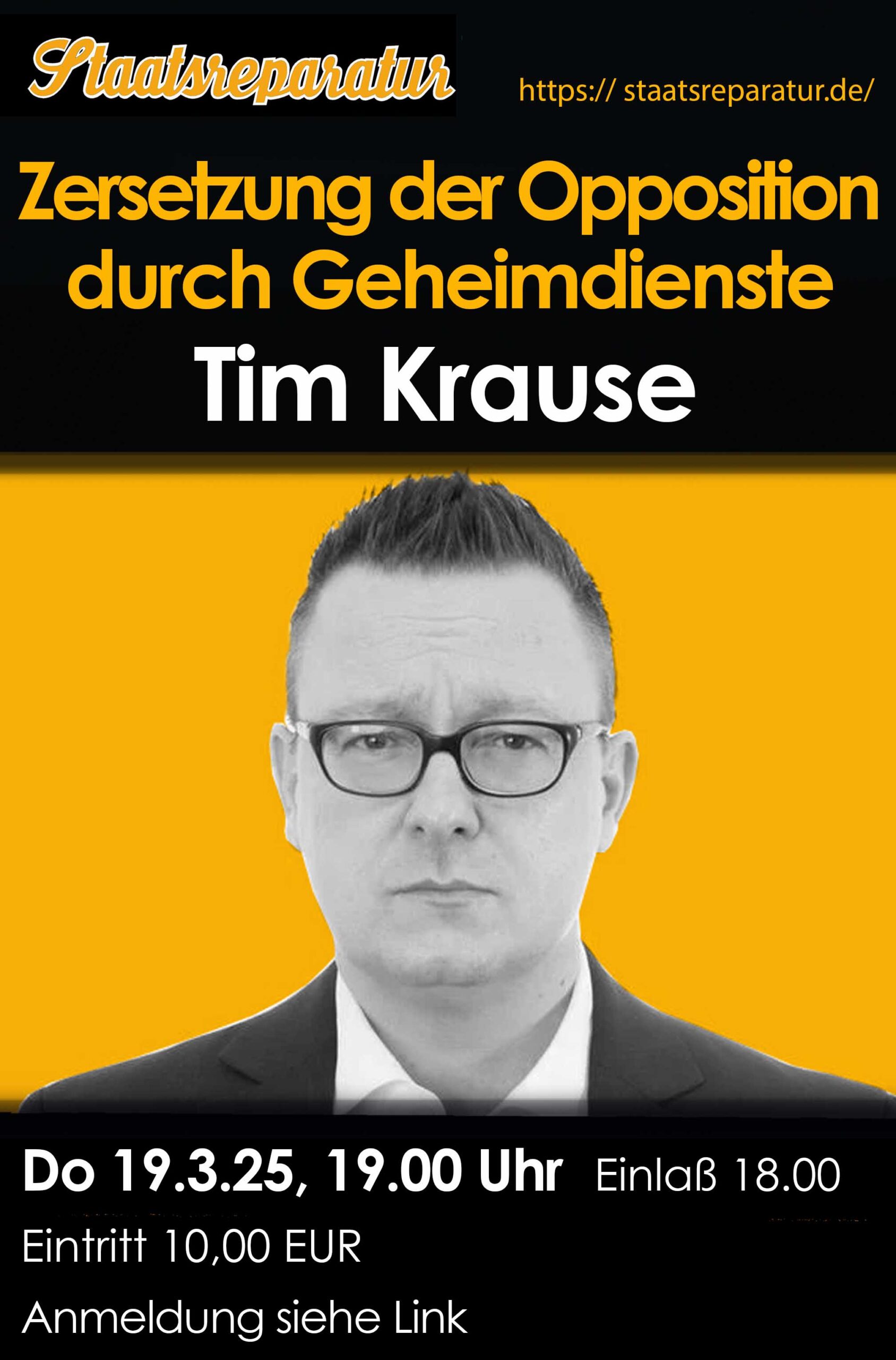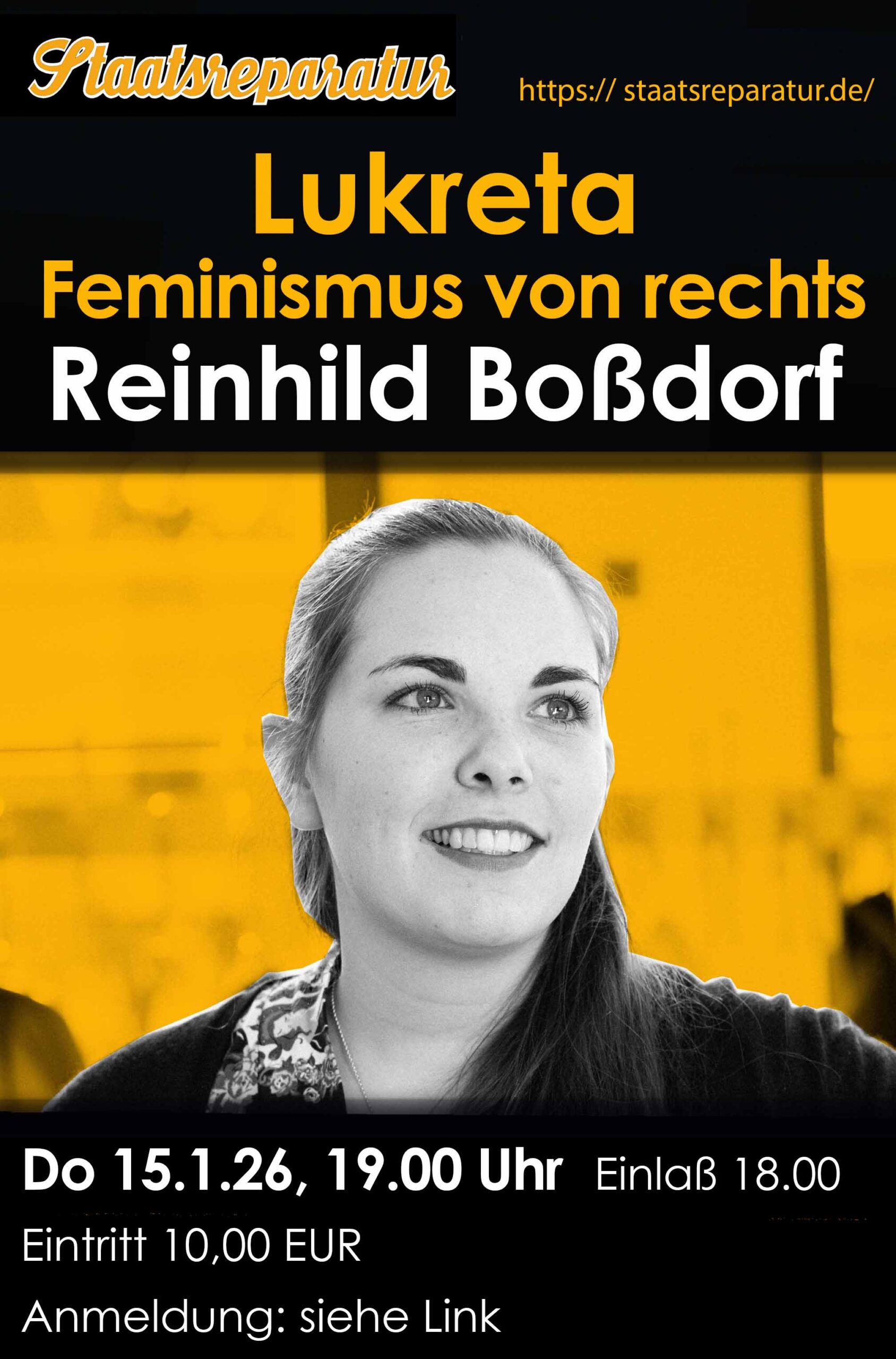 Der Vortrag findet Donnerstag, den 5. Dezember 2024 in der „Staatsreparatur“ (Jungfernstieg 4 B, 12207 Berlin), direkt nebem dem S-Bahnhof Lichterfelde Ost, statt. Beginn ist um 19:00 Uhr, Einlaß ab 18:00 Uhr.