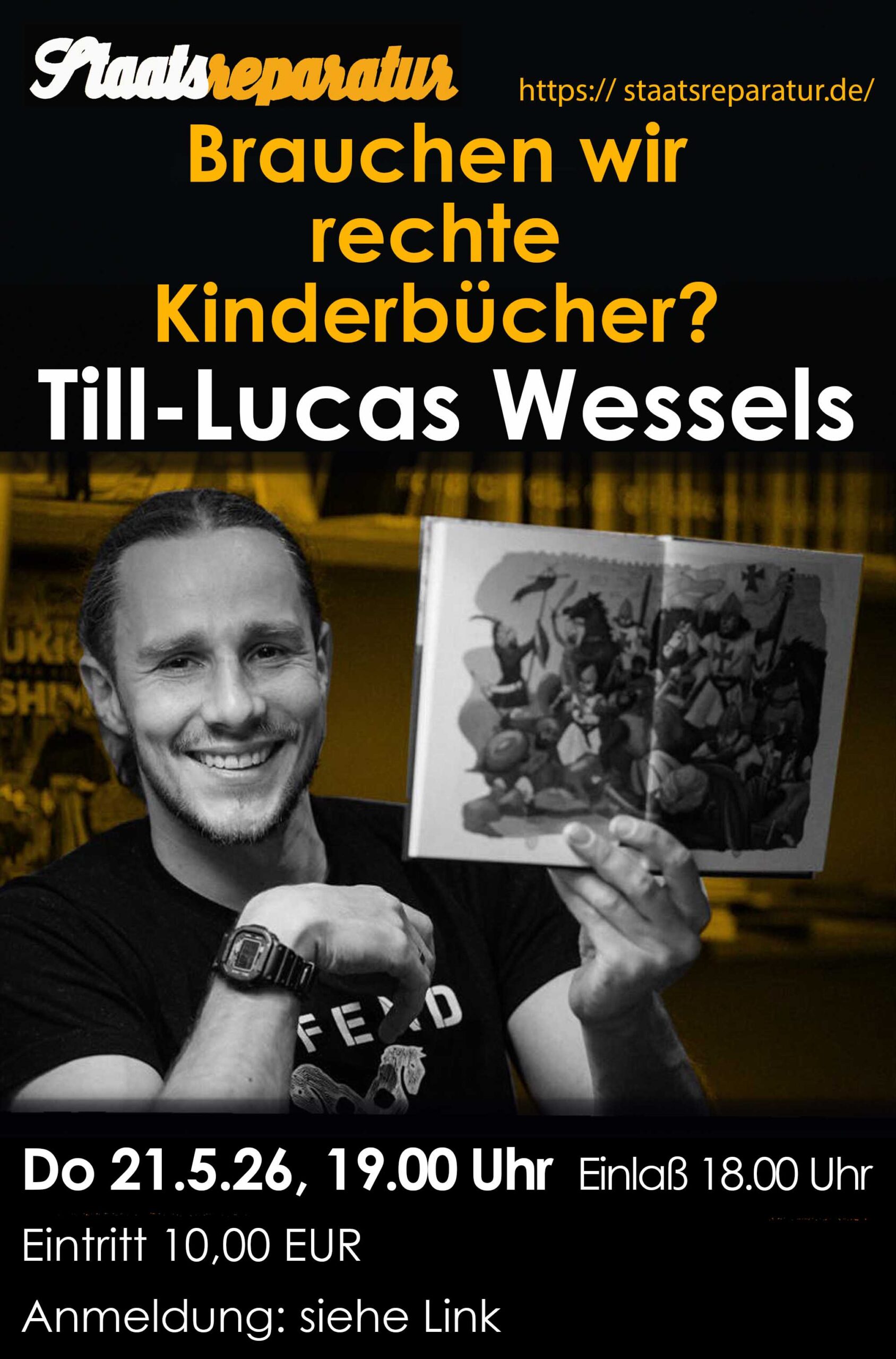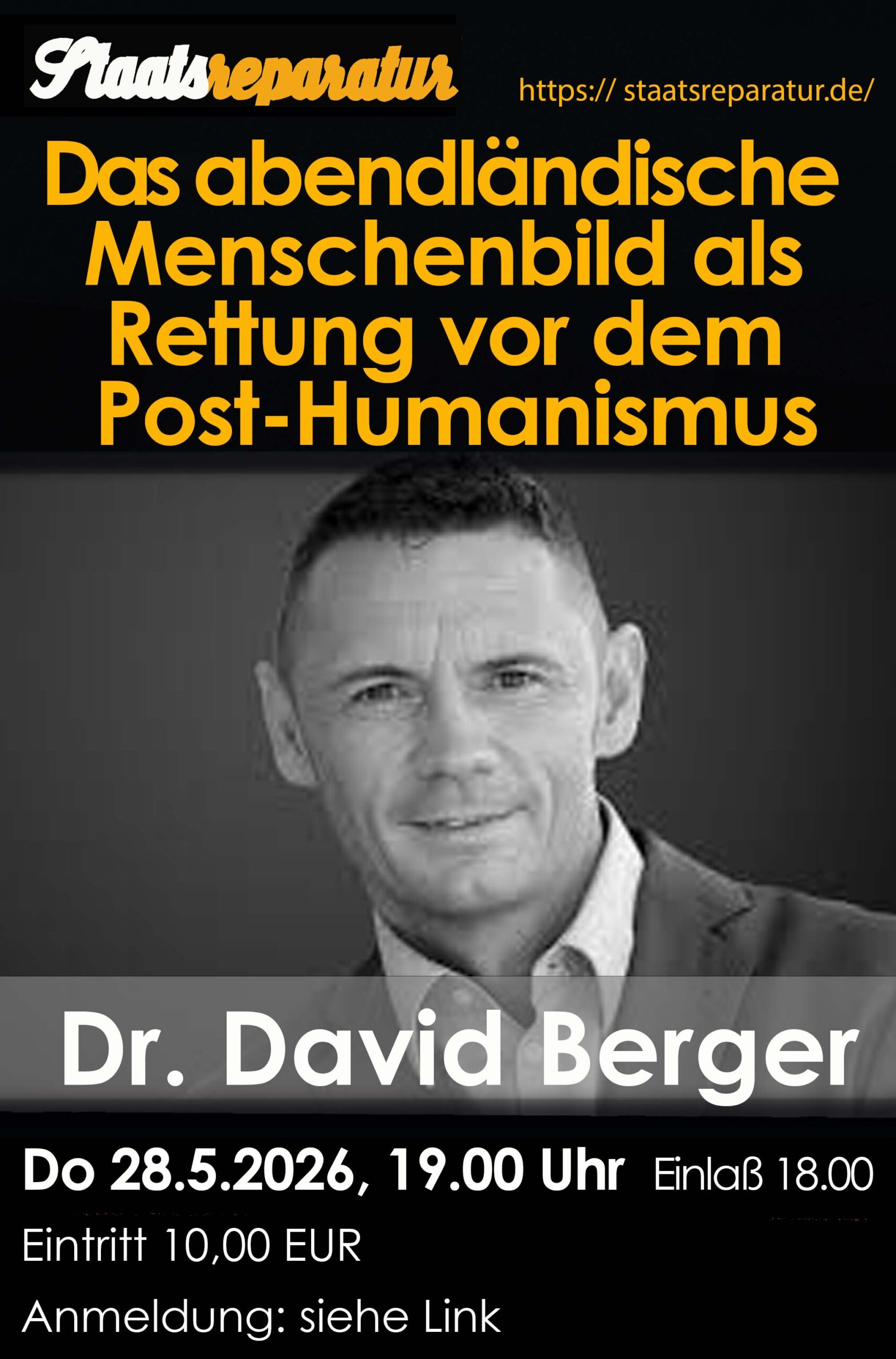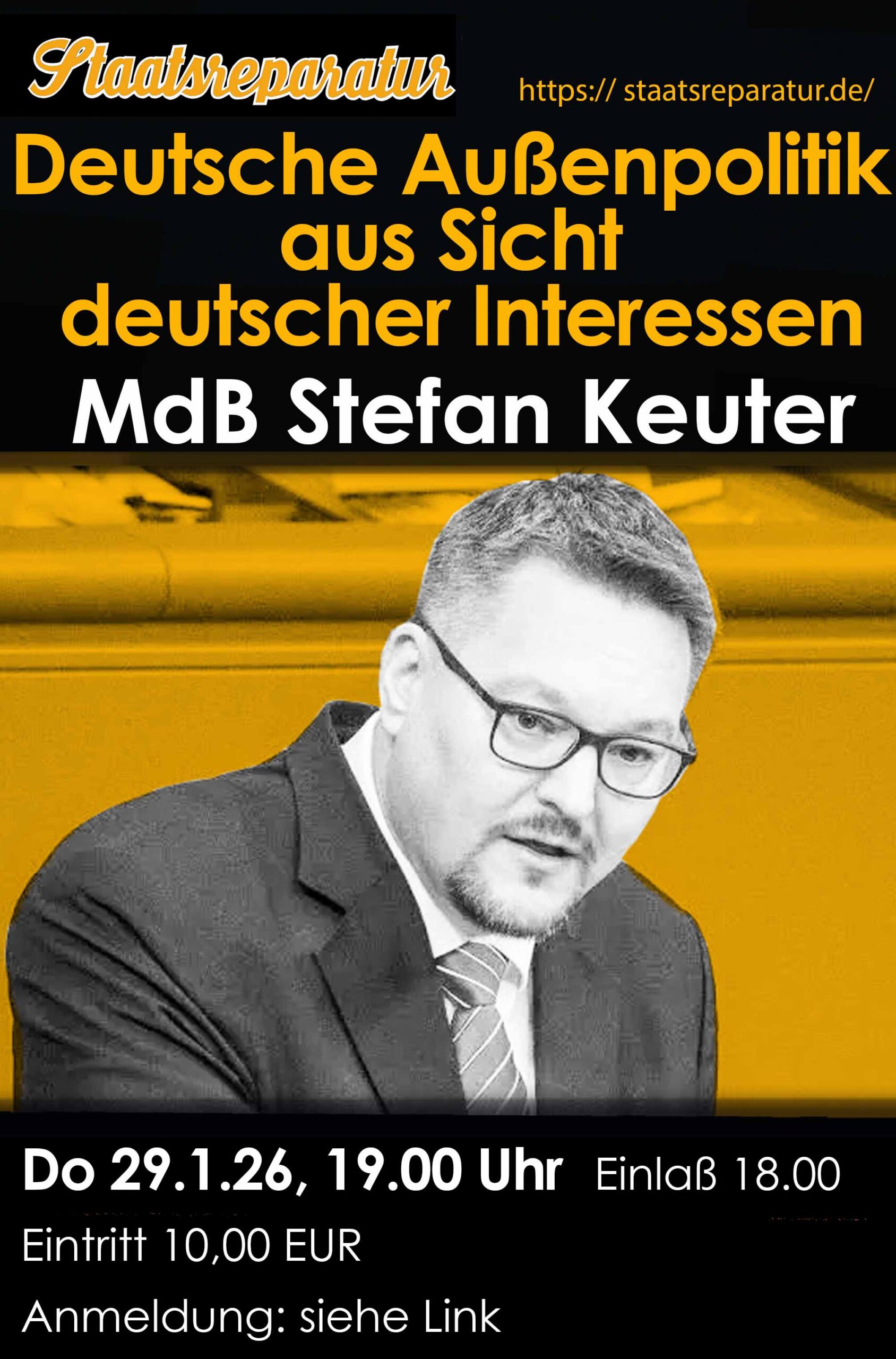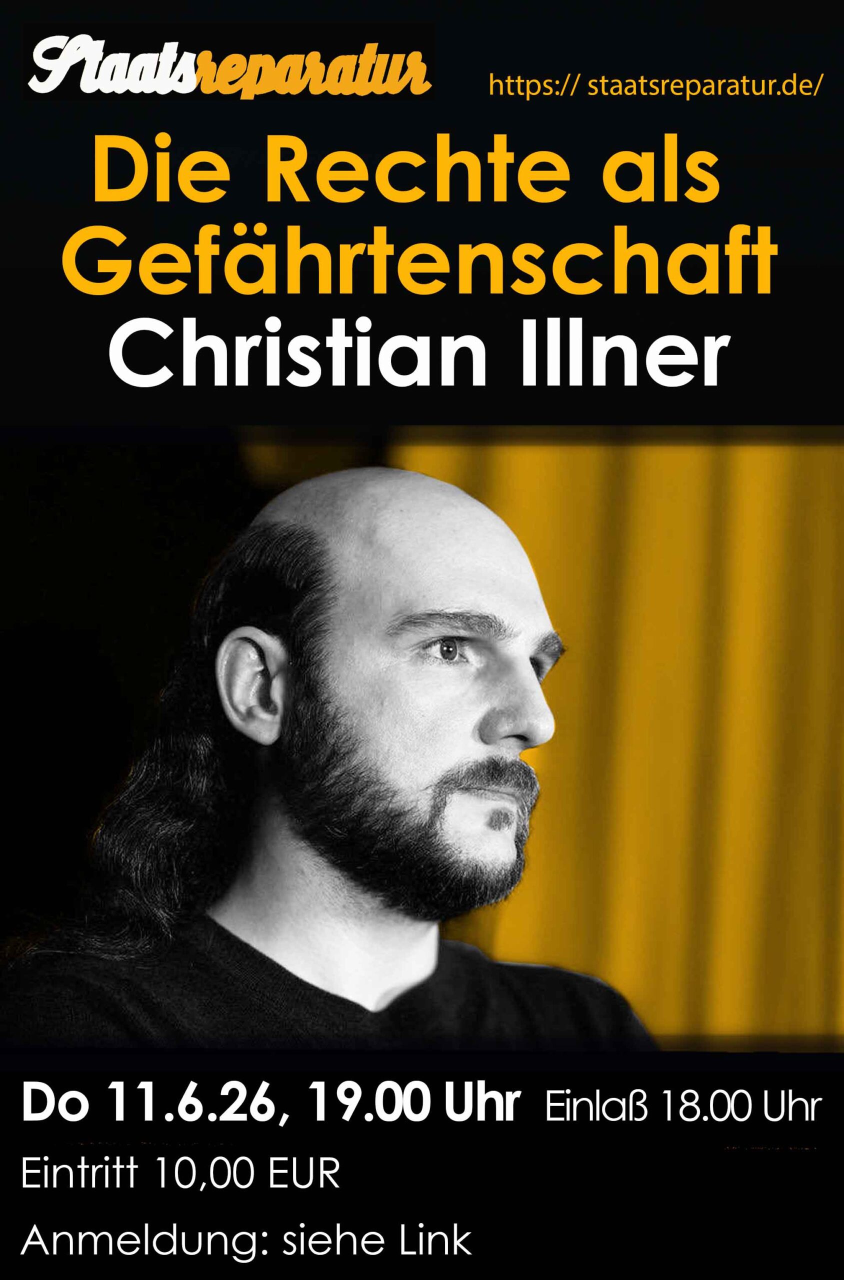 Der Vortrag findet Donnerstag, den 5. Dezember 2024 in der „Staatsreparatur“ (Jungfernstieg 4 B, 12207 Berlin), direkt nebem dem S-Bahnhof Lichterfelde Ost, statt. Beginn ist um 19:00 Uhr, Einlaß ab 18:00 Uhr.
