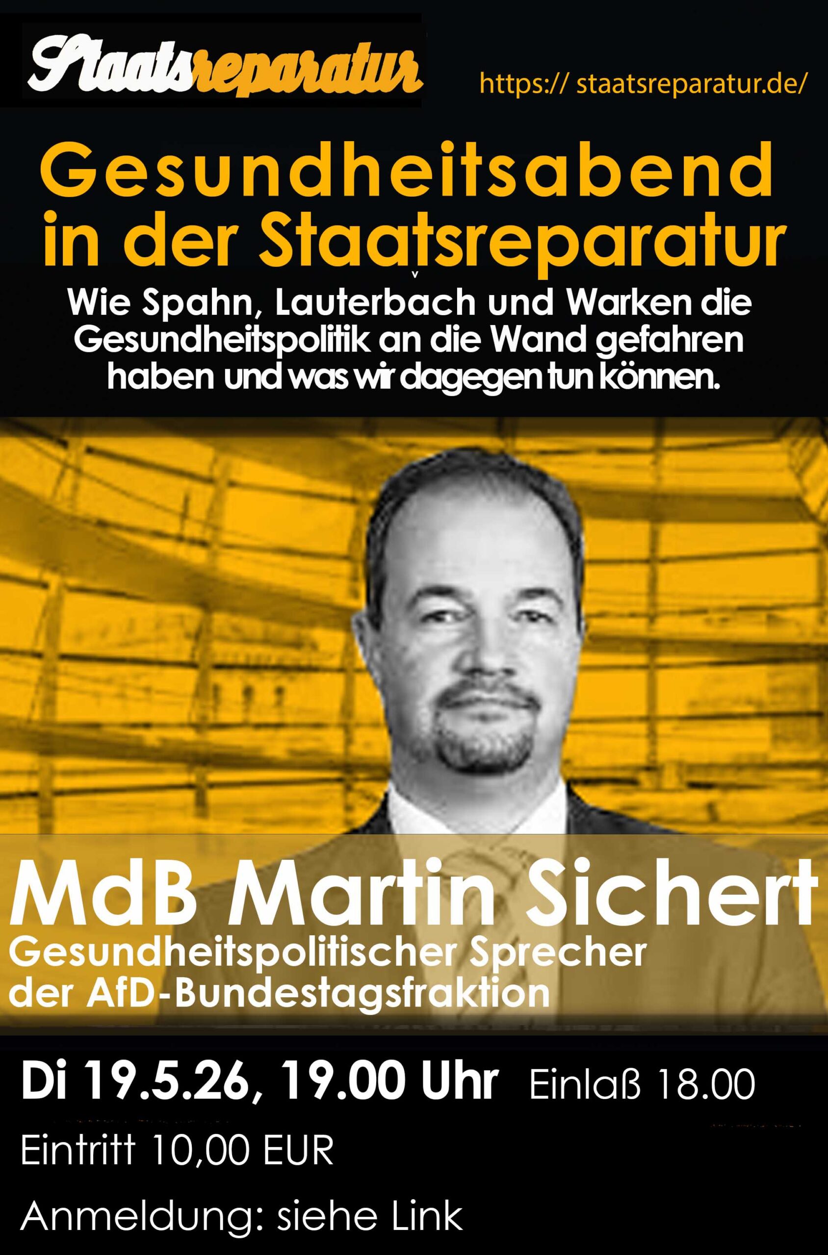 Am Mittwoch dieser Woche (dem Mittwoch nach der Trump-Nacht) freuen wir uns aus dem Bundestag den Verkehrsexperten Dirk Spaniel in der Staatsreparatur begrüßen zu dürfen.