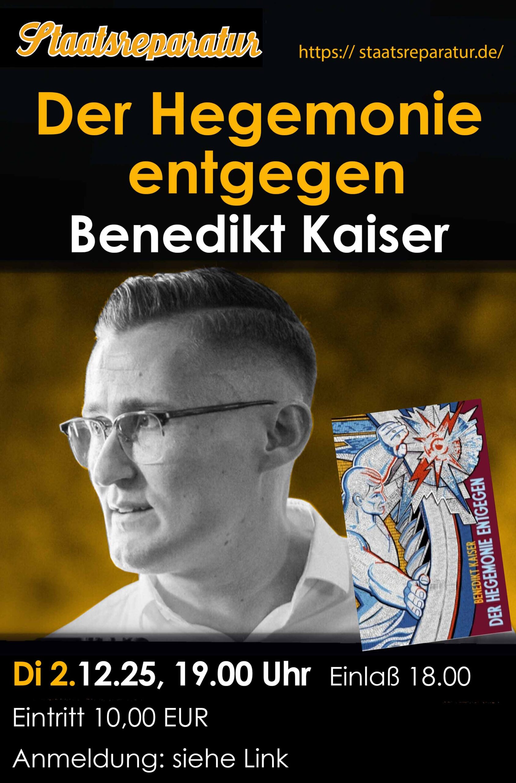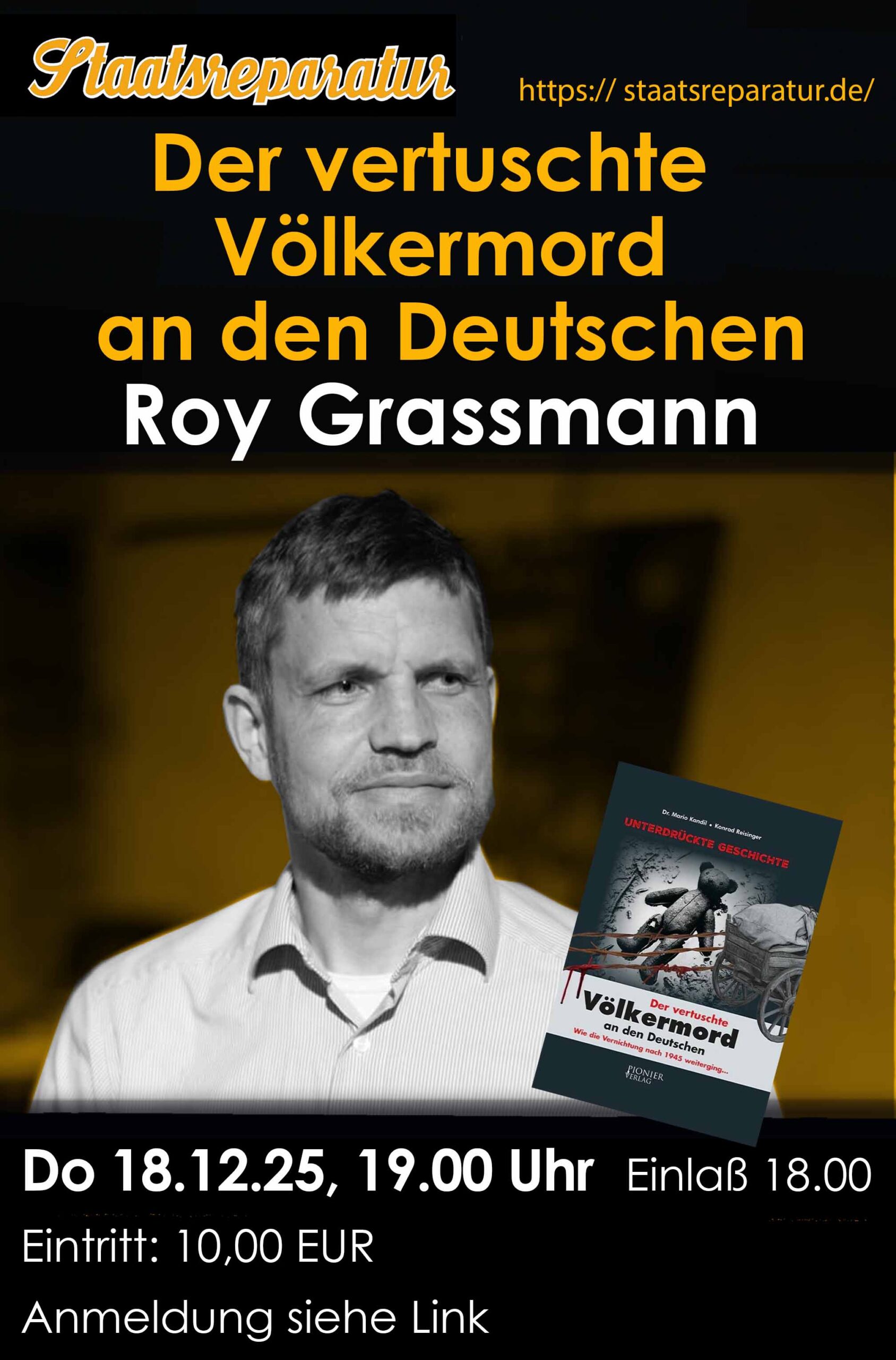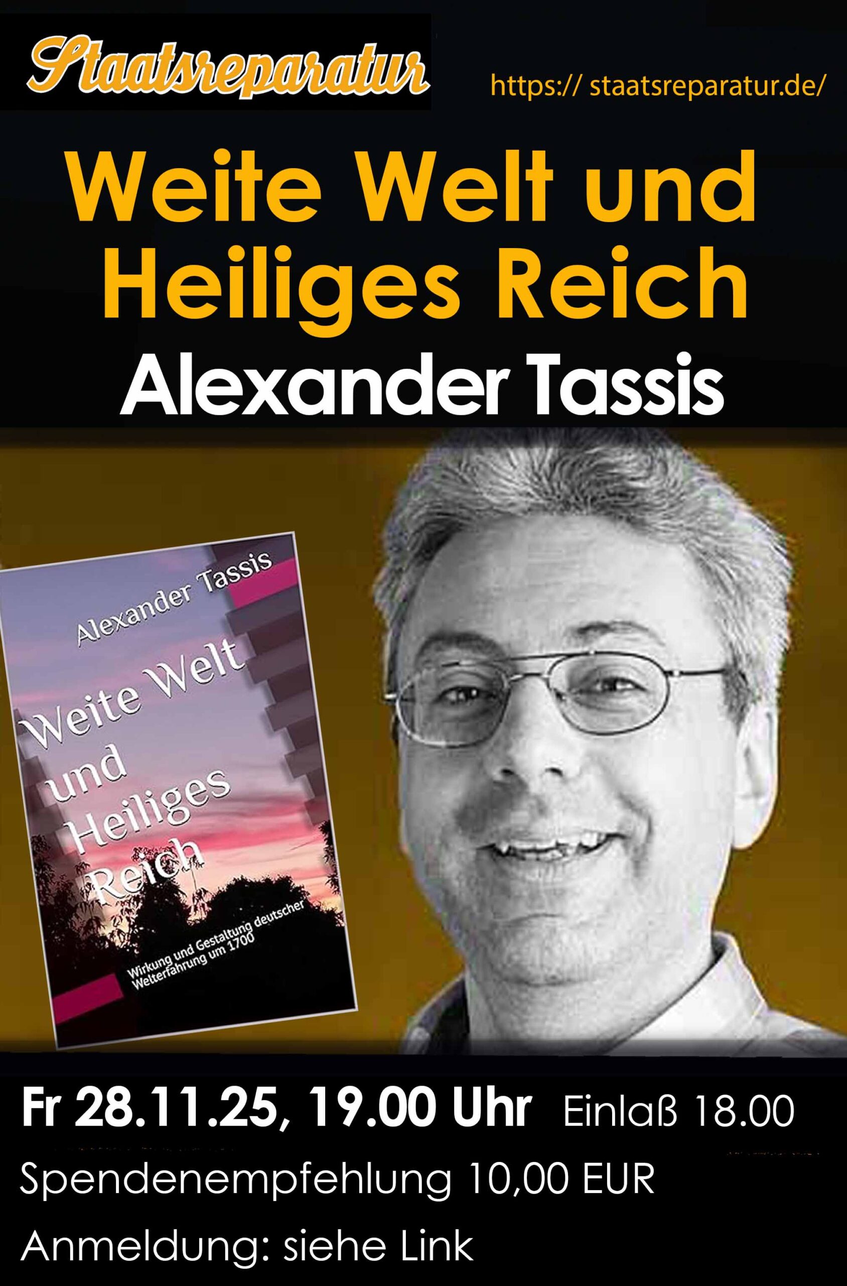 Der Vortrag findet Donnerstag, den 5. Dezember 2024 in der „Staatsreparatur“ (Jungfernstieg 4 B, 12207 Berlin), direkt nebem dem S-Bahnhof Lichterfelde Ost, statt. Beginn ist um 19:00 Uhr, Einlaß ab 18:00 Uhr.